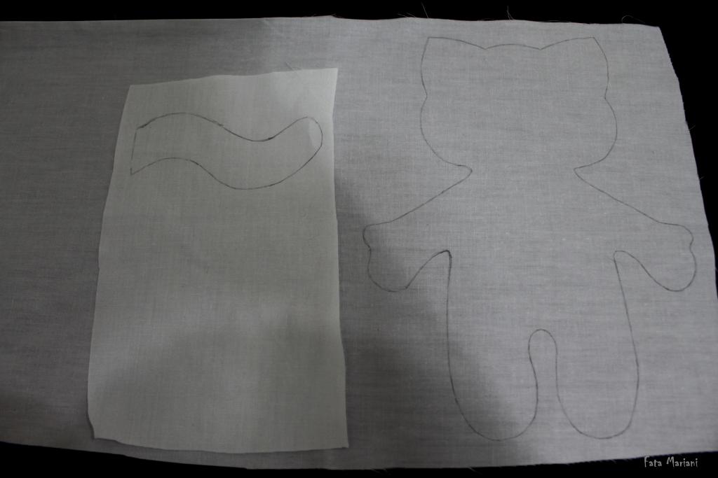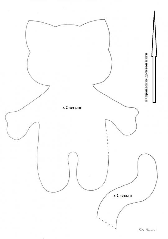 Распечатайте выкройку, увеличив/уменьшив ее до нужного размера. Если выкройка растянута на лист А4, то высота готового котика получается 20 см. Если нет возможности распечатать рисунок, его можно перевести на бумагу, приложив лист к монитору.