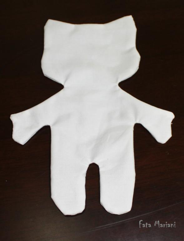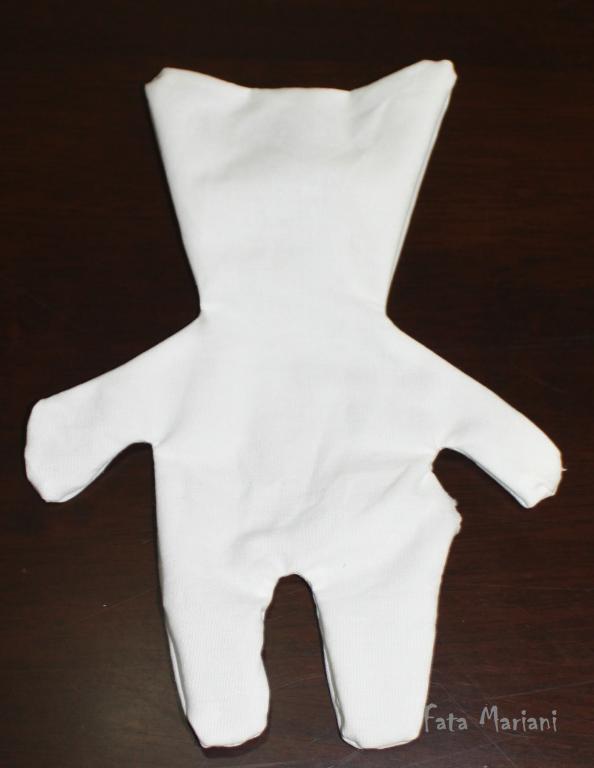 Тельце лучше выворачивать, начав с головы и лапок: выверните их вовнутрь, а затем уже вытягивайте через отверстие (сначала голову, потом лапы).