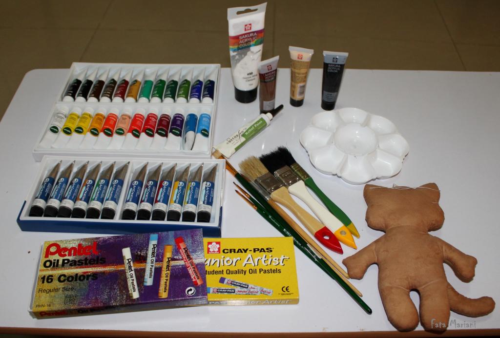 - акриловая краска для ткани нужного вам цвета и тонкая мягкая кисть для росписи (№00-2), если мордочку хотите нарисовать;