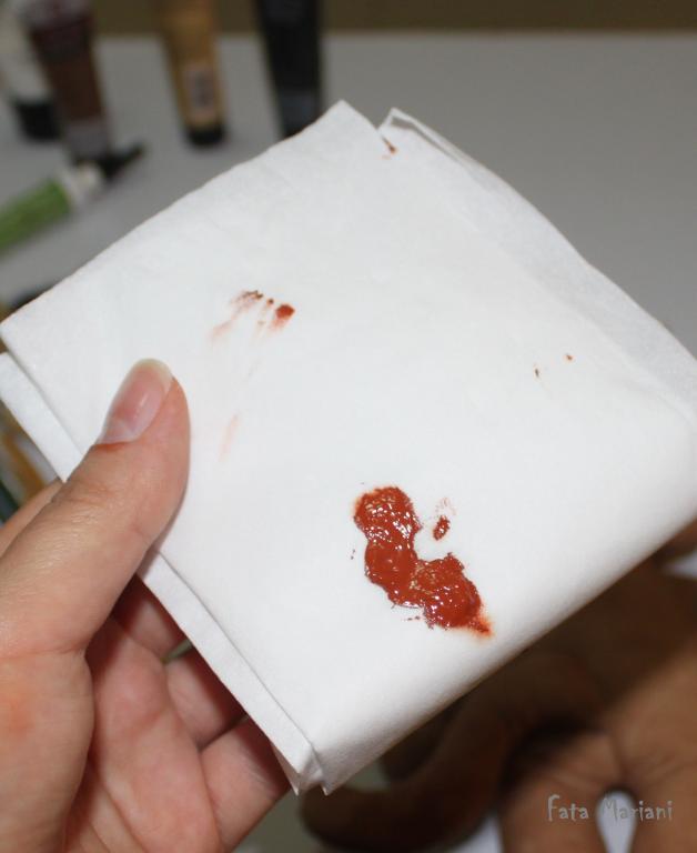 Тонировка масляными красками. Выдавите немного масляной краски на салфетку, немного подождите, чтобы салфетка впитала лишнее масло.