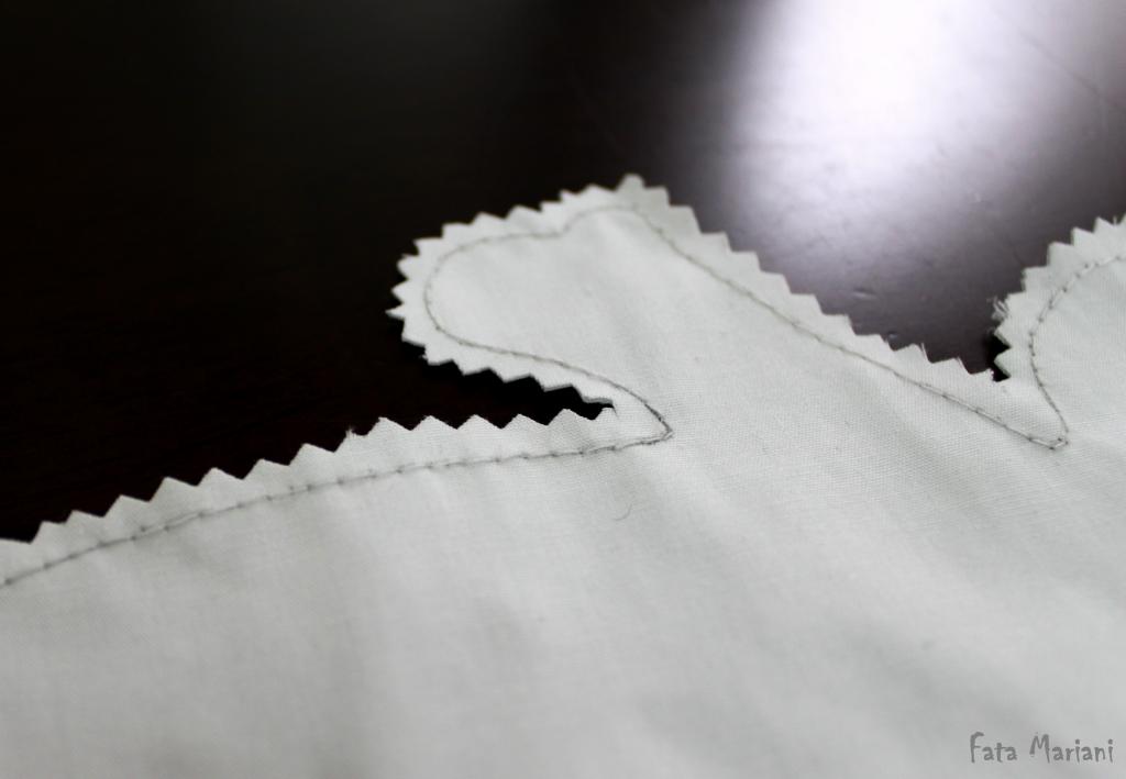 По линии выкройки сшейте обе половинки ткани. Место, обозначенное на выкройке пунктирной линией зашивать не нужно!